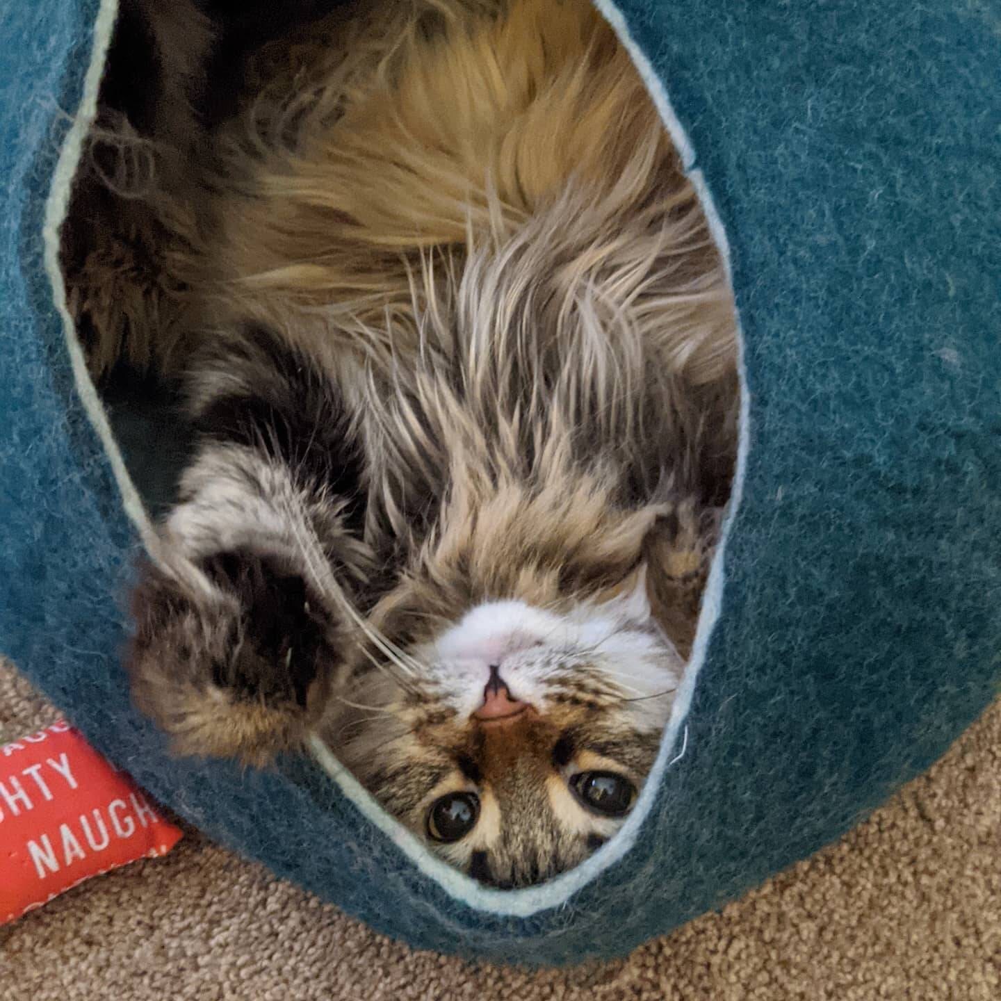 We bought two of the pods, one for each new kitten we adopted. Both had been trapped from outdoor colonies. These wonderful pieces helped the kitties feel secure but didn’t allow them to completely hide away, just what they needed. They’re making fine progress and love their little domains.