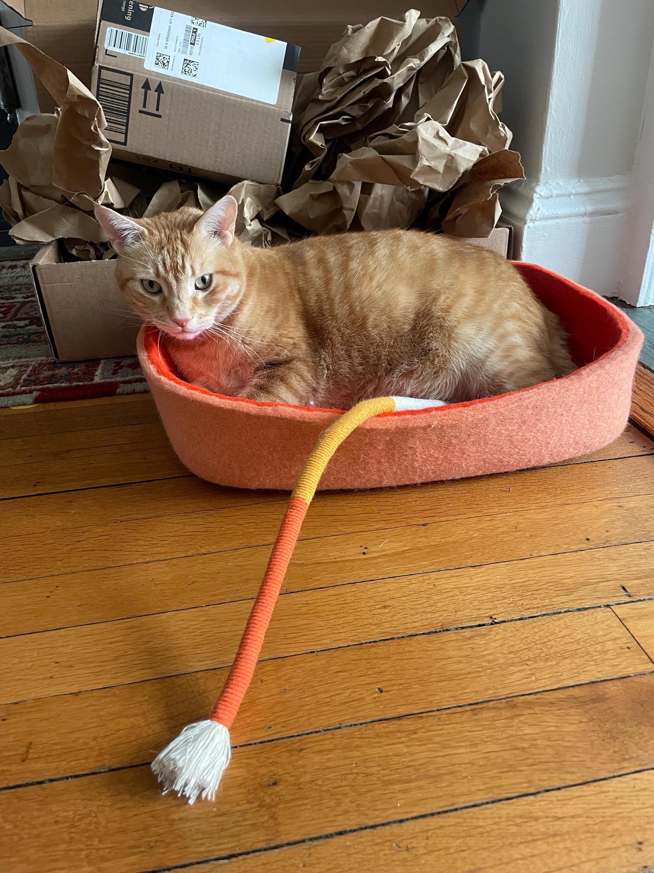 Our cat, Clancy, loves this “box”. We got it to replace a cardboard box that he loved, and he took to it immediately!